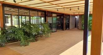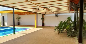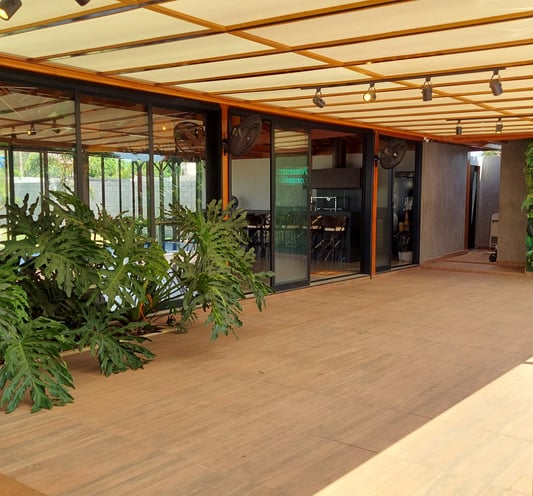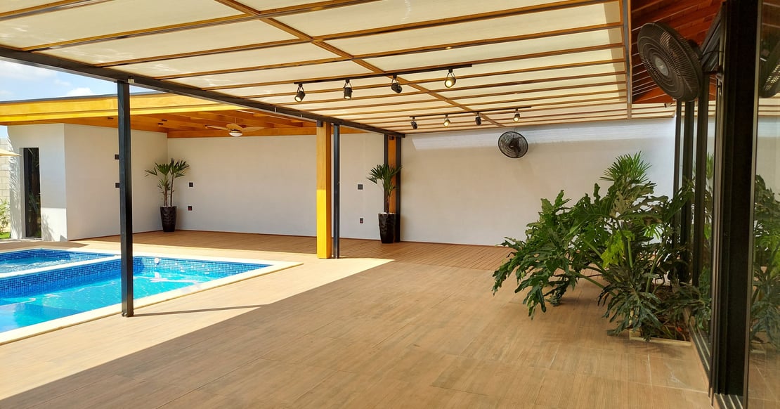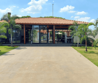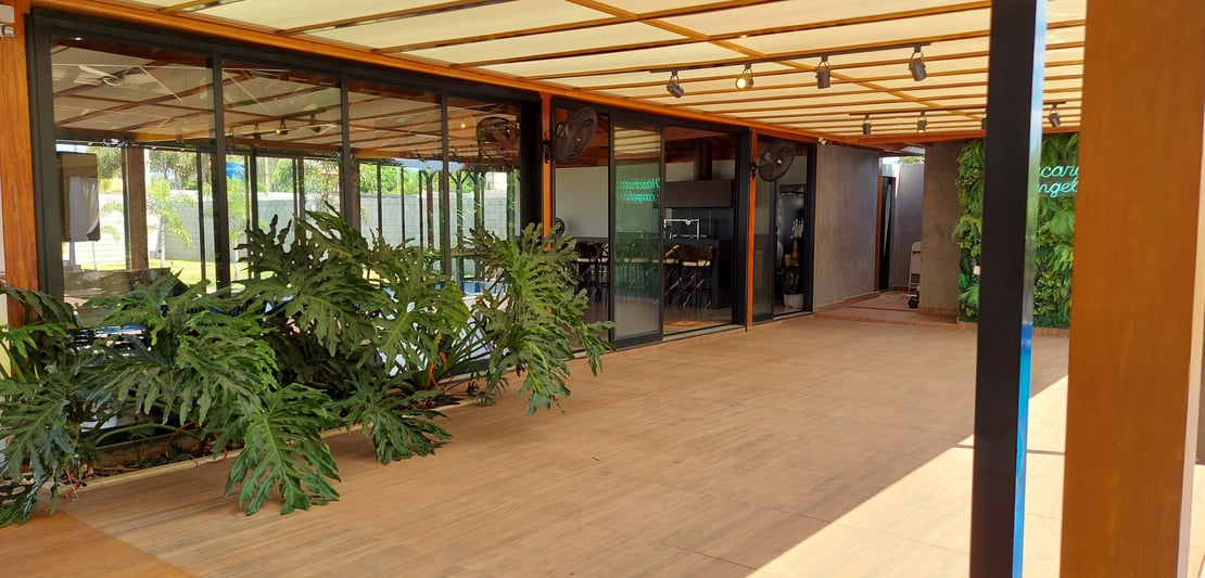 Salão de festas fehado com vidro